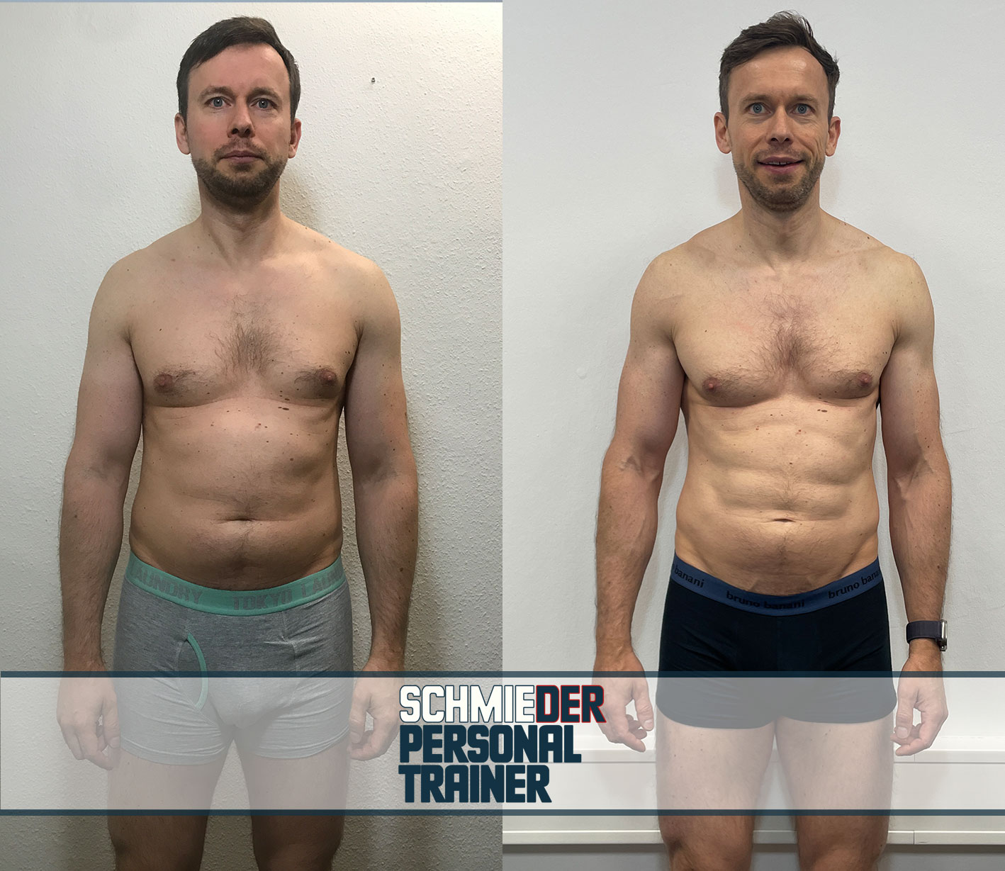 Unternehmer Simon hat zweimal pro Woche Personal Training mit einem Ganzkörpertrainingsplan mit mir im SPT Studio gemacht. Nach 6 Monaten Zusammenarbeit hat er folgendes erreicht:
